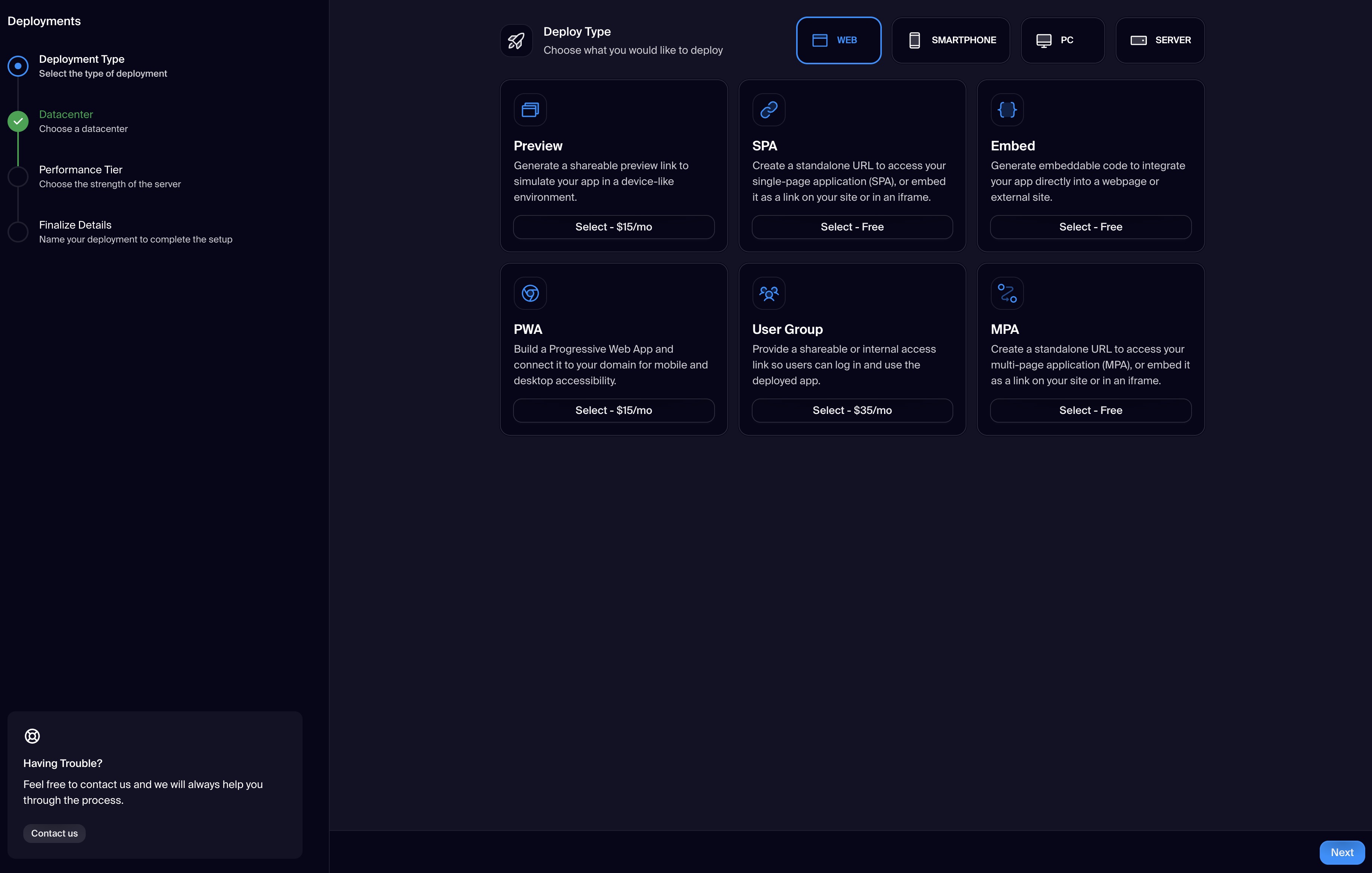 Xuda’s deployment system allows you to launch your application across a wide range of formats from a single platform. Whether you need a Progressive Web App (PWA), a native smartphone app, or a server-side API hub, our flexible options make it simple. Each deployment runs in a secure, isolated environment, ensuring high performance and reliability. With minimal configuration, you can make your project accessible on any platform or device, streamlining your path from development to a global audience.