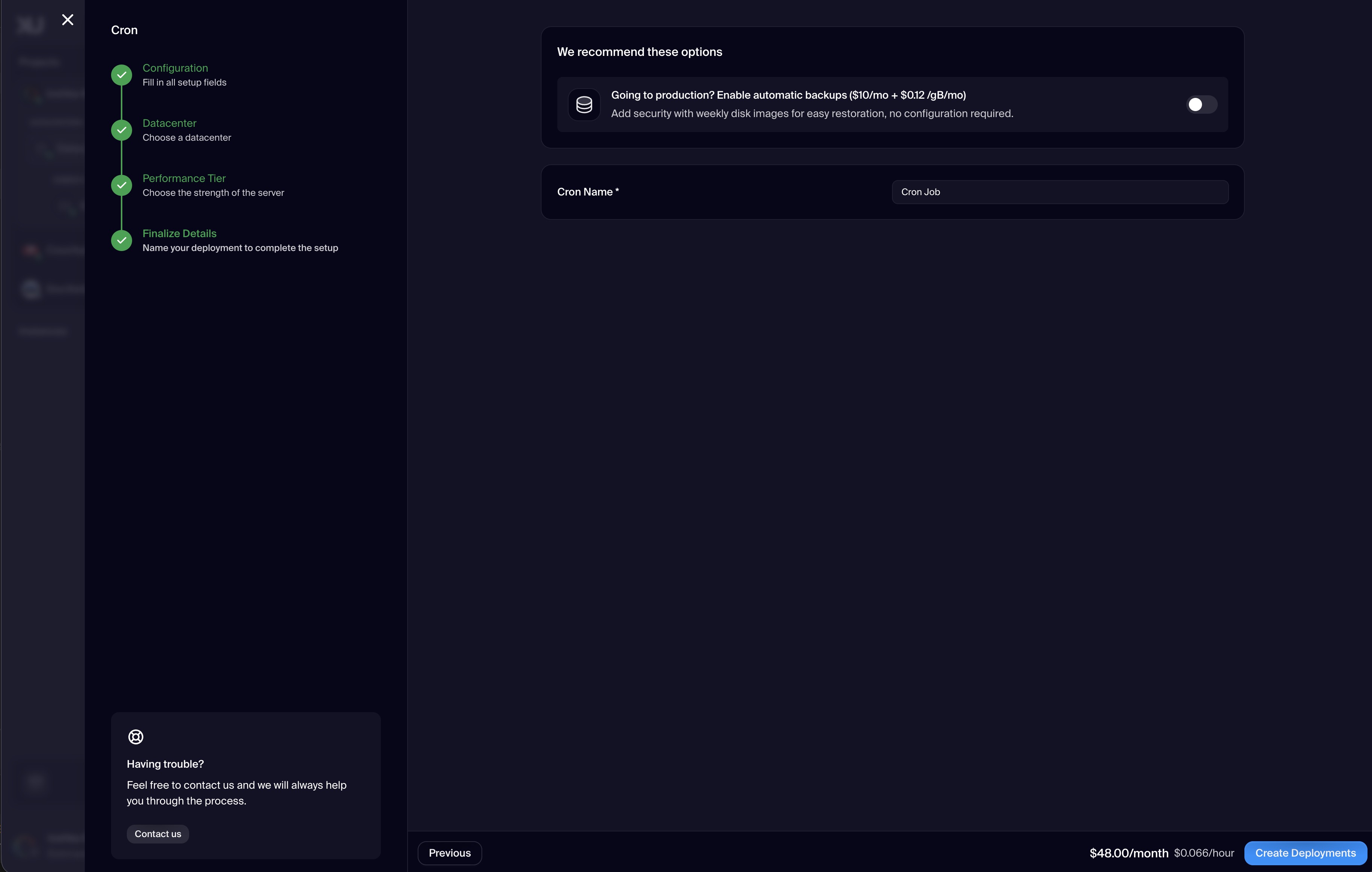 Cron Deployment allows developers to automate recurring tasks directly within Xuda’s infrastructure. By defining cron expressions, you can schedule jobs to run at fixed intervals—whether every minute, daily, weekly, or on custom schedules. These jobs execute securely on the server side, making them ideal for operations such as database cleanup, data synchronization, report generation, API polling, or event-driven workflows. Xuda’s VPS-backed isolation ensures that scheduled tasks run reliably and independently, without interfering with other application processes. Logs and monitoring tools provide visibility into execution history, helping developers track and debug tasks as needed. Cron Deployment simplifies backend automation and ensures that critical processes run on time, every time.