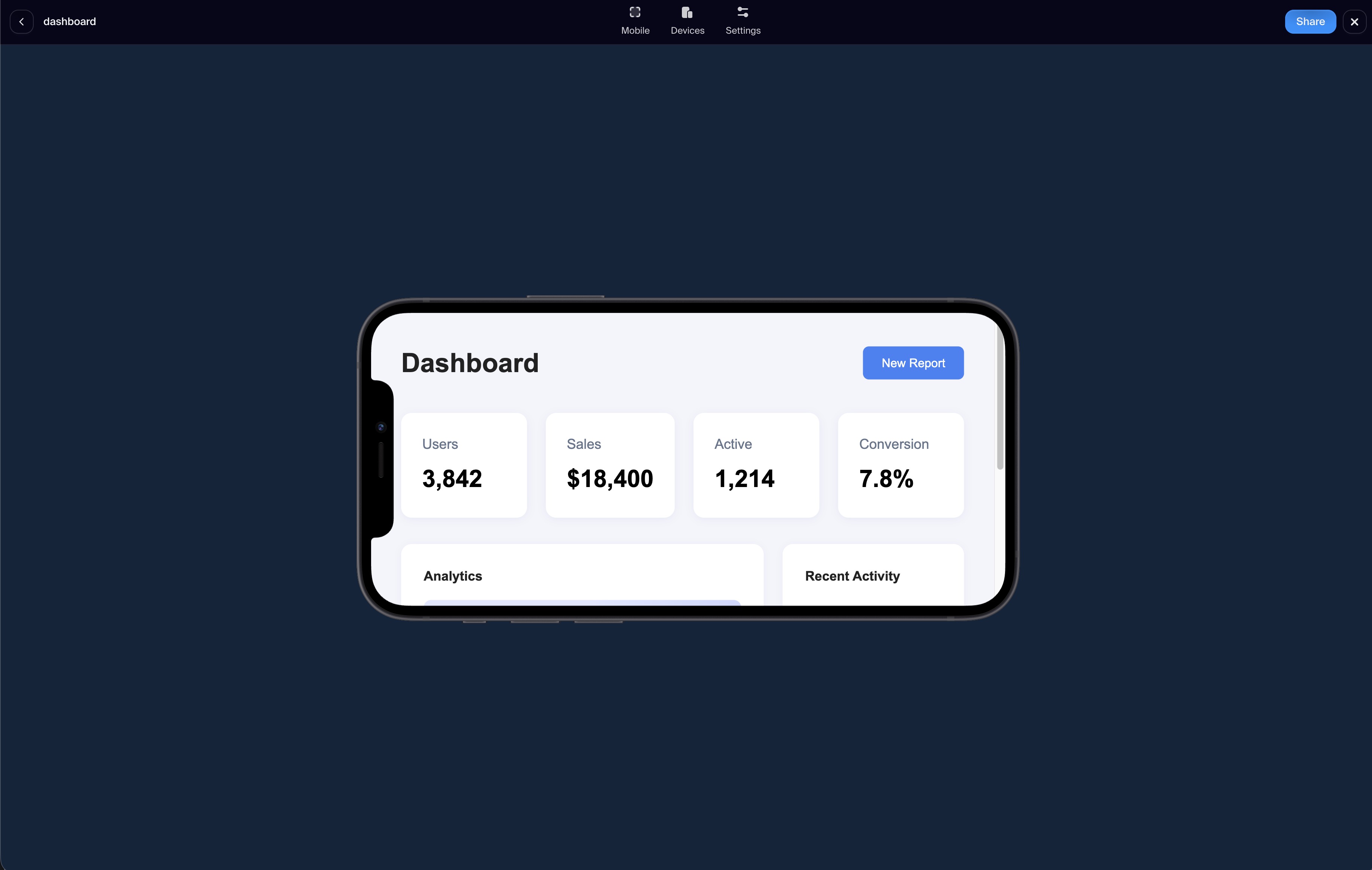 Share previews and builds directly from the studio toolbar, minimizing setup time and manual export steps.