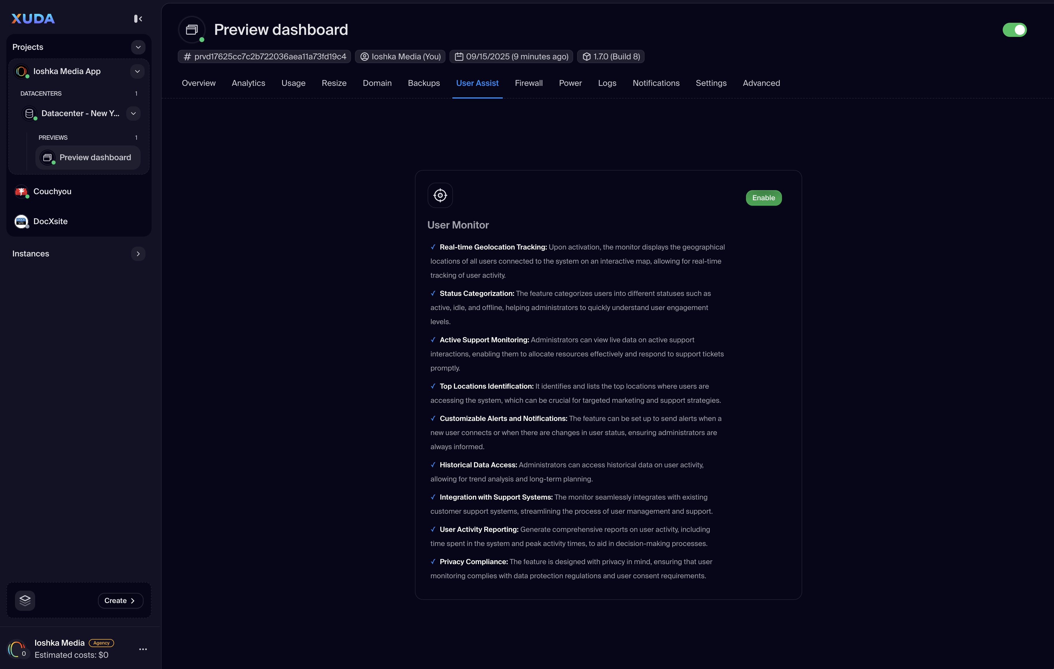 The Preview Deployment feature allows you to generate a unique, shareable link that simulates your application within a device-like frame. This provides a realistic environment for testing user experience and responsiveness without needing a full production deployment. Each preview runs in an isolated, high-performance VPS connected directly to your Xuda Datacenter, ensuring the simulation is fast, secure, and uses real-time data. It's an essential tool for developer testing, gathering feedback from stakeholders, and conducting design reviews before pushing changes live.