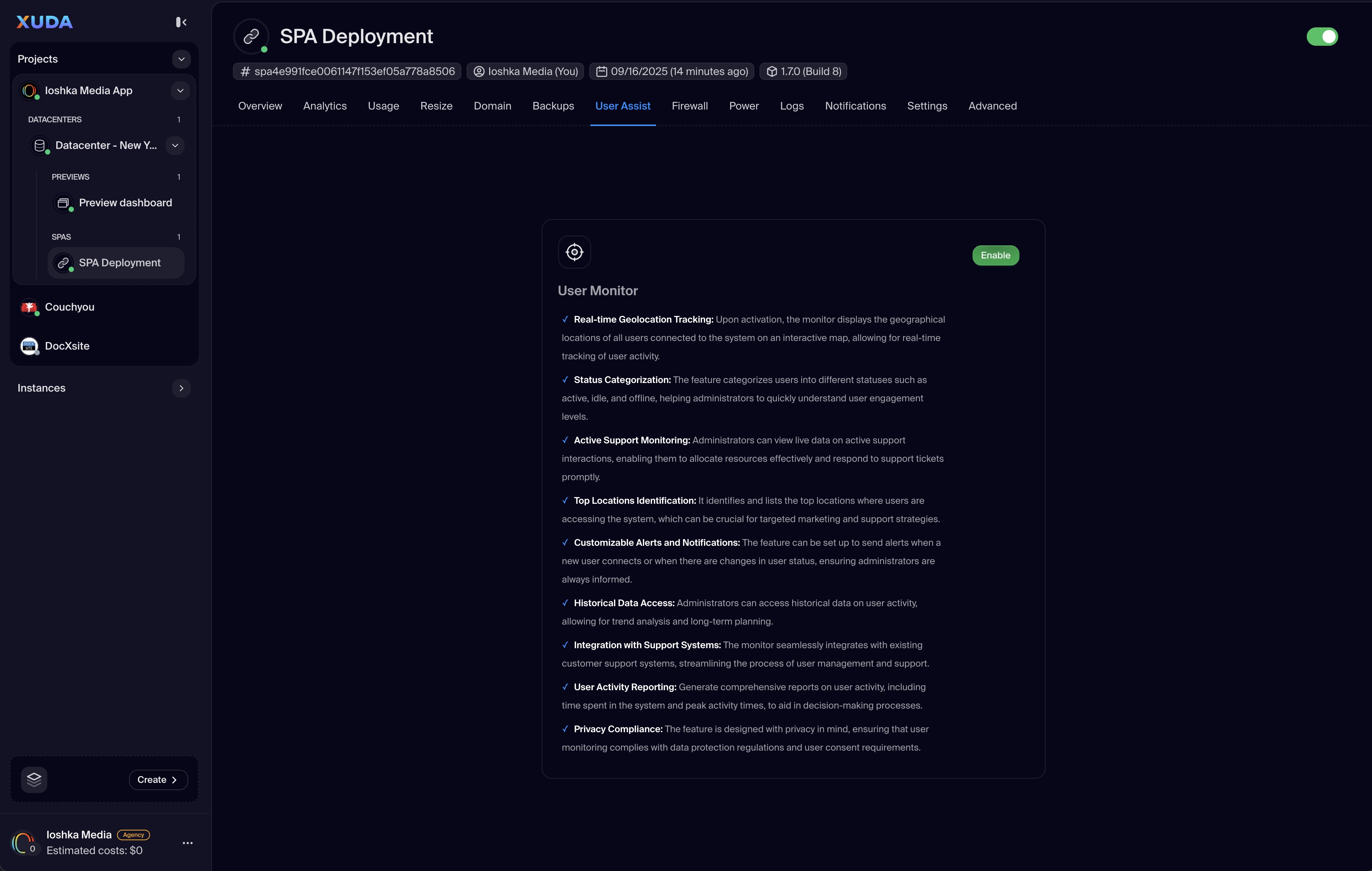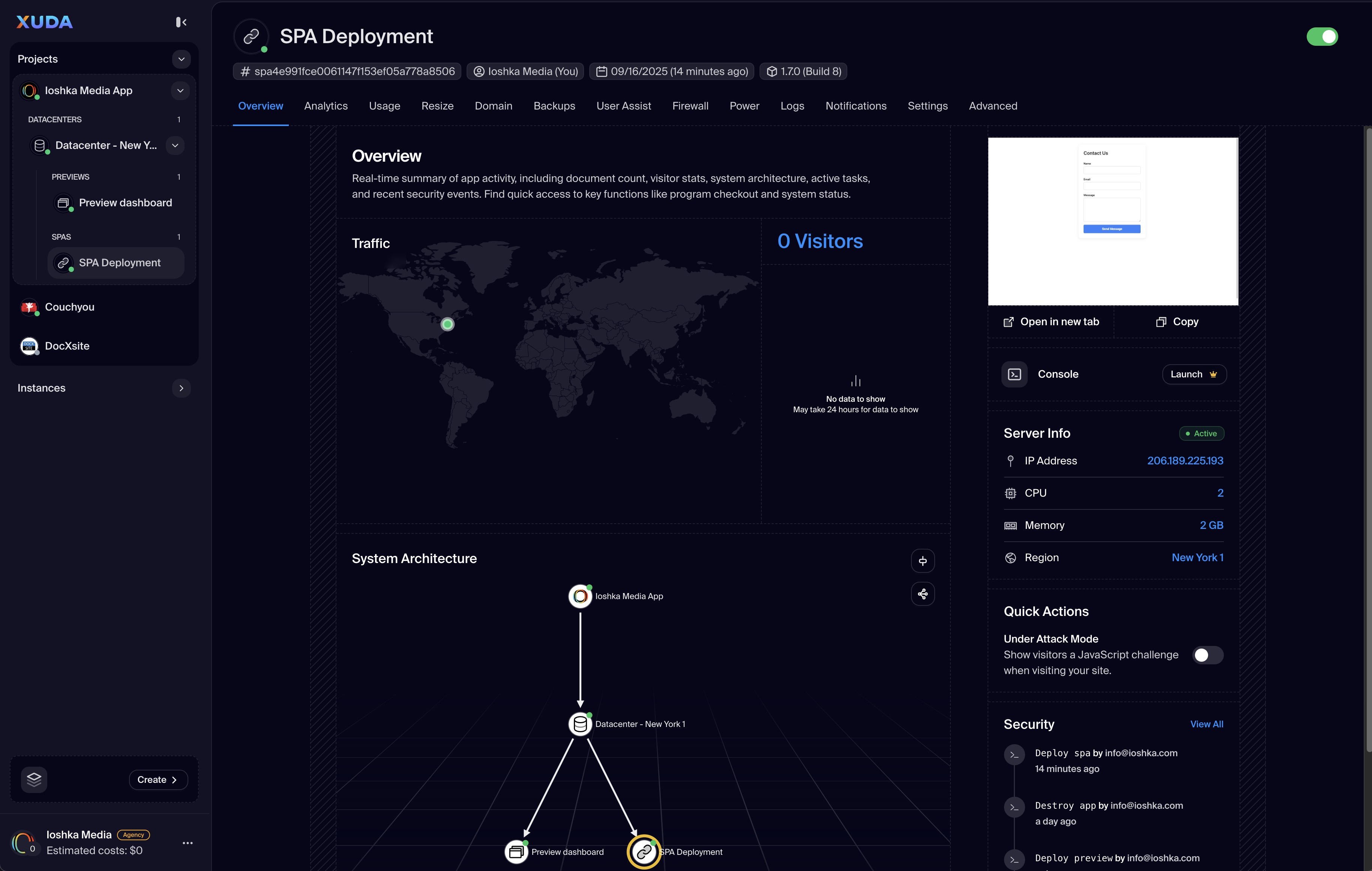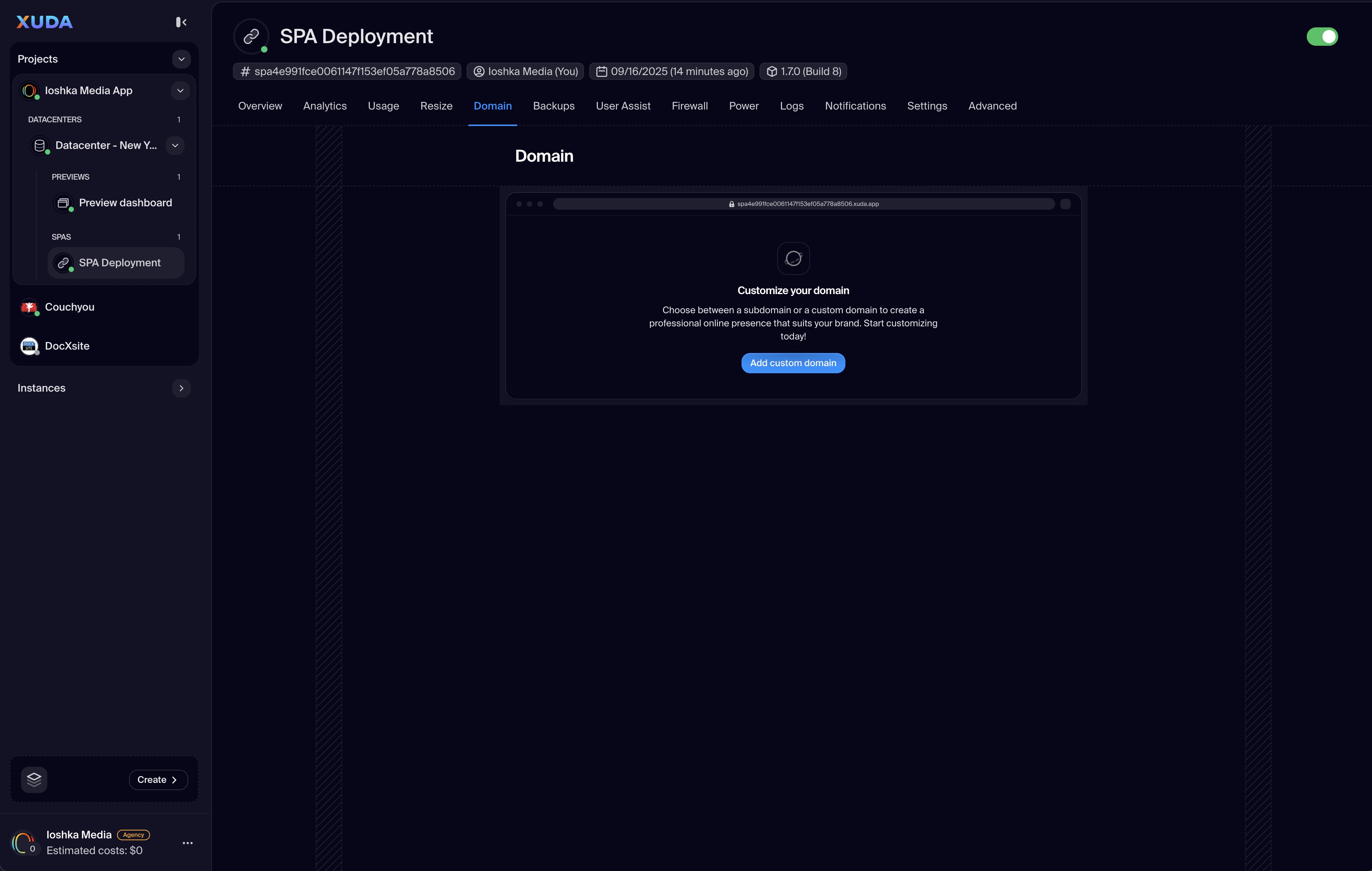 The SPA Deployment option is the most direct way to get your single-page application live on the web. It generates a unique, publicly accessible URL that serves your application, making it instantly available to users. This is ideal for websites, portfolios, and web-based tools. Each SPA deployment runs in a secure, isolated VPS environment, ensuring consistent performance and reliability. The standalone URL can be used as a direct link, shared easily, or embedded into other websites using an iframe, offering versatile integration possibilities.